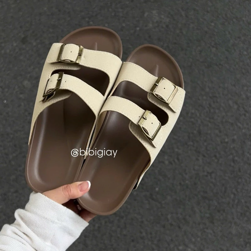 136 đánh giá cho Dép nam, nữ 2 quai ngang khóa da lộn đế 3cm mới T325
