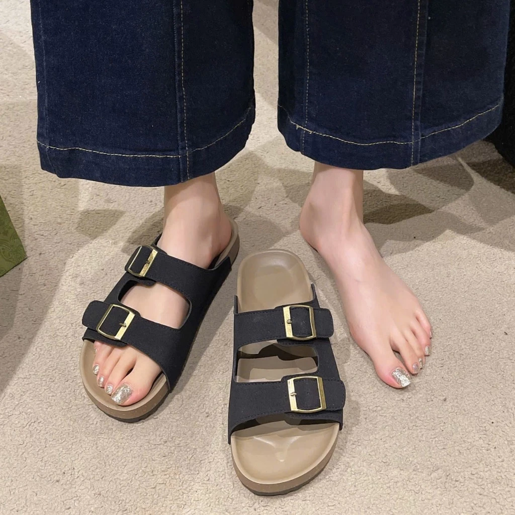 Dép nam, nữ 2 quai ngang khóa da lộn đế 3cm mới T325
