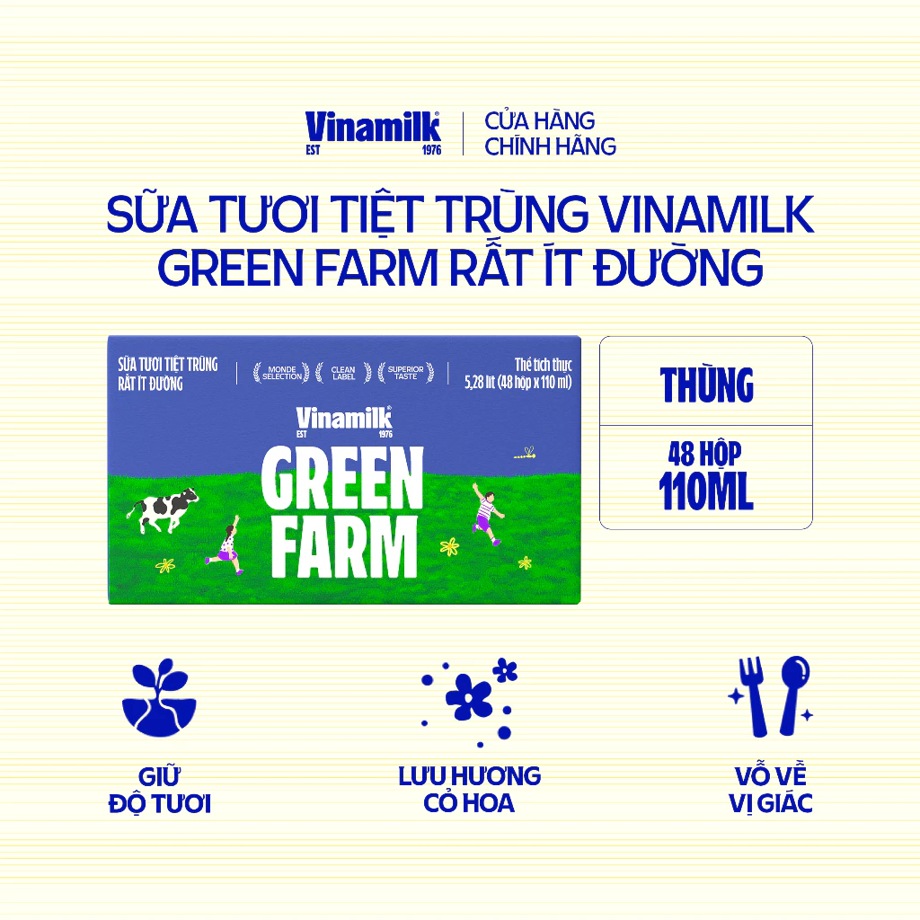 Thùng 48 hộp Sữa tươi Tiệt Trùng Vinamilk Green Farm rất ít đường 110ml
