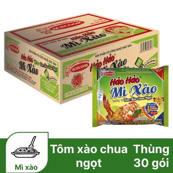 Thùng 30 Gói Mì Tôm Acecook Hảo Hảo Chua Cay Đậm Đà Sợi Dai Thơm Ngon